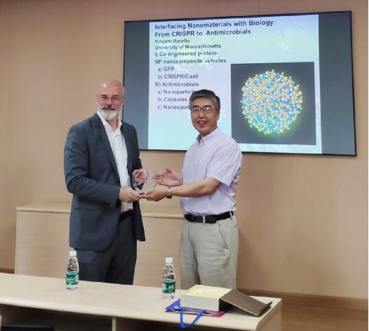 As an important breakthrough in the interfacing of nanomaterials and biology, gold nanoparticles are found capable of delivering proteins and serving as an effective therapeutic against multiple drug-resistant bacteria, said University of Massachusetts professor Vincent Rotello at the eighth lecture of Nanjing Distinguished Scholars’ Lecture Series on Transformative Science and Engineering (TSE Lectures) on August 21, 2019.