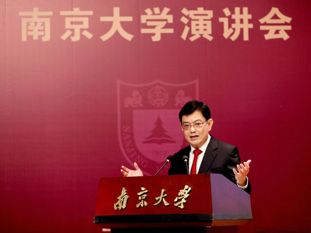 Singaporean Finance Minister Heng delivering a speech (photo by She Zhijun)