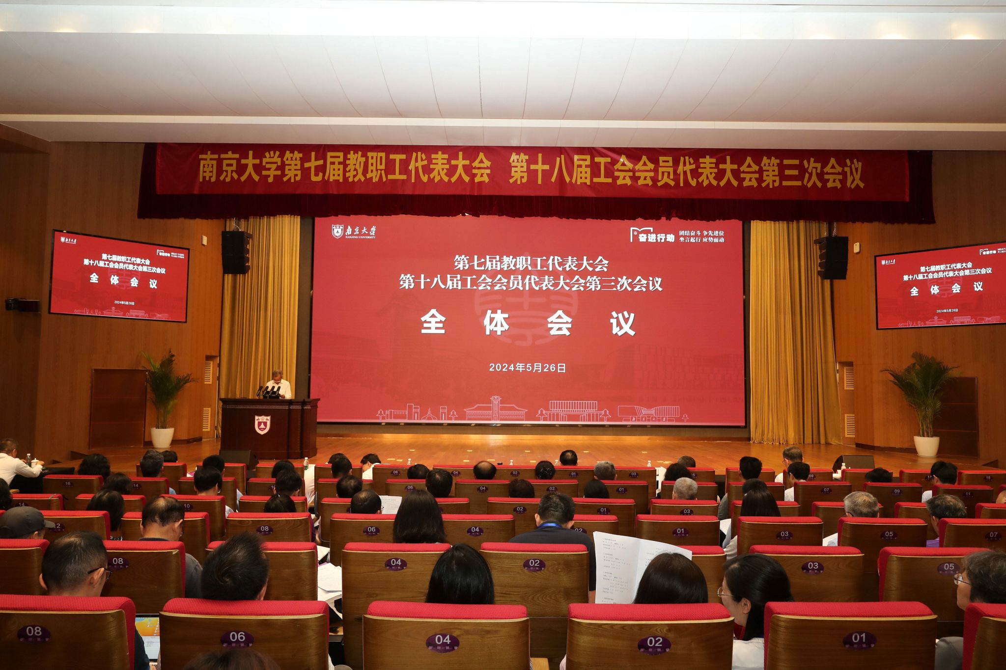 On May 26, Nanjing University held the third session of the Seventh Congress of Faculty and Staff Representatives and the Eighteenth Congress of Union Members at the Xianlin Campus. The meeting was attended by Tan Tieniu, the Secretary of the CPC NJU committee and Academician of the CAS; Tan Zhemin, President of NJU and Academician of the CAS; as well as more than 300 faculty and staff representatives. The attendees gathered to discuss the university's development. The meeting was chaired by Chen Yunsong, Vice Secretary of the CPC NJU committee.