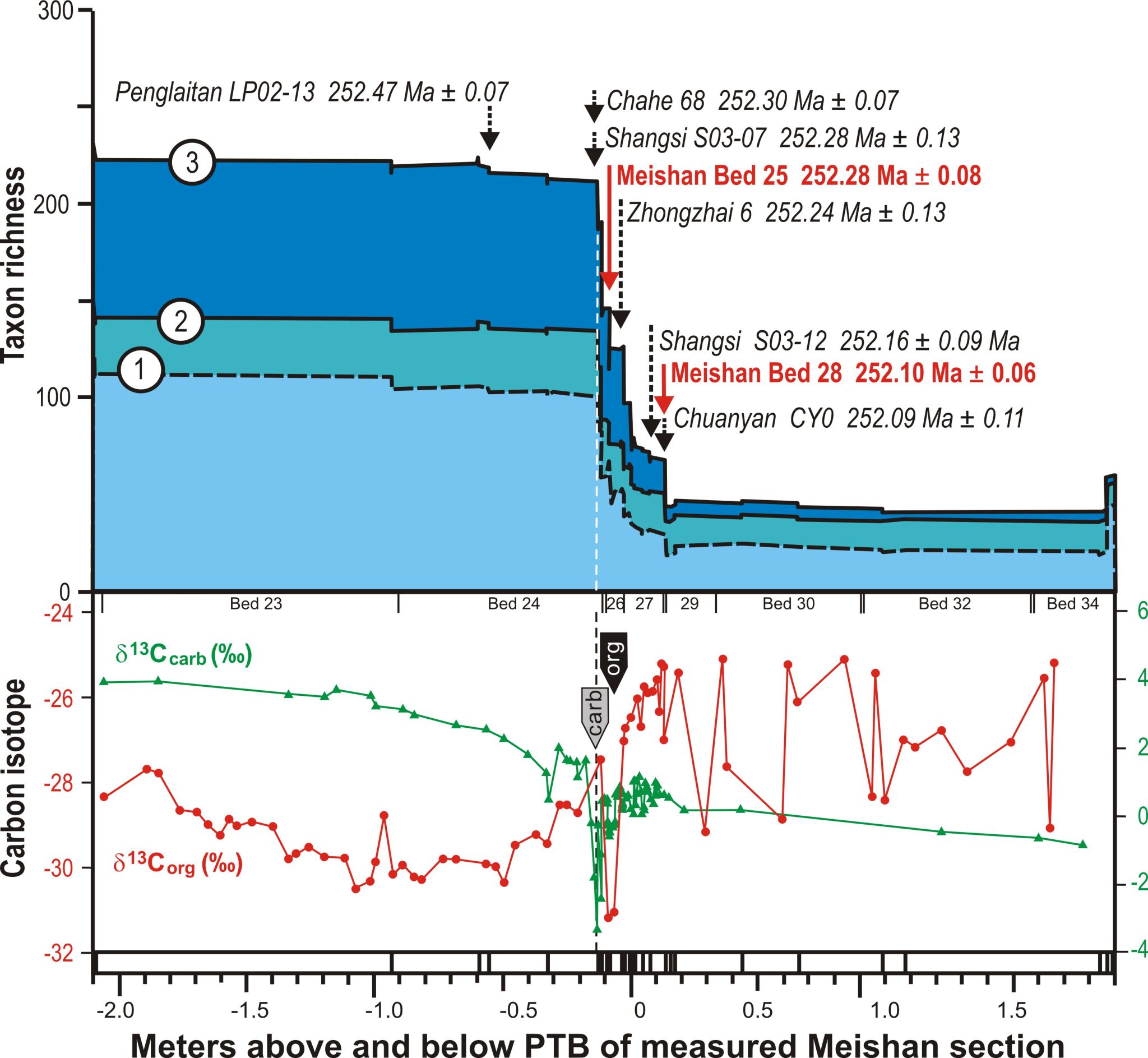 Academician Shen Shuzhong and his team members Fan Junxuan, Zhang Feifei, Zhang Hua, and Zhang Yichun have conducted extensive research on the assembly and breakup of Pangea approximately 260 million years ago. Their work has not only established a high-precision stratigraphic framework but also used big data and artificial intelligence algorithms to reconstruct marine biodiversity evolution curves, revealing global climatic upheavals and changes in marine and terrestrial ecosystems associated with the aggregation and breakup of Pangea. These results provide valuable references for understanding the evolution of the Earth system.
