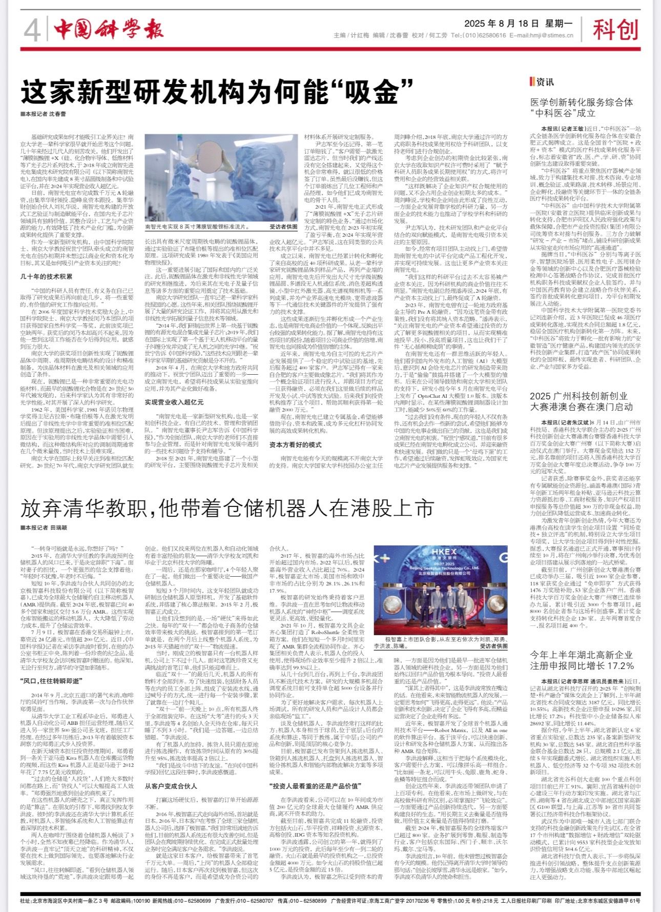 “我们这样的科研平台过去不太容易被产业资本关注,因为科研机构的商业价值往往不明显。”南智光电副总经理潘涛说,2024年底,有产业资本主动找上门,最终促成了A轮融资。