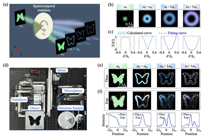 近日,凯发k8官网物理学院声学研究所刘晓峻教授与程营教授课题组在声学超材料领域取得了重要进展。研究团队成功设计并制备了一种基于旋转多普勒效应的声学时空超表面,实现了声学涡旋频率梳,并将其应用于声学图像处理器件的构建。