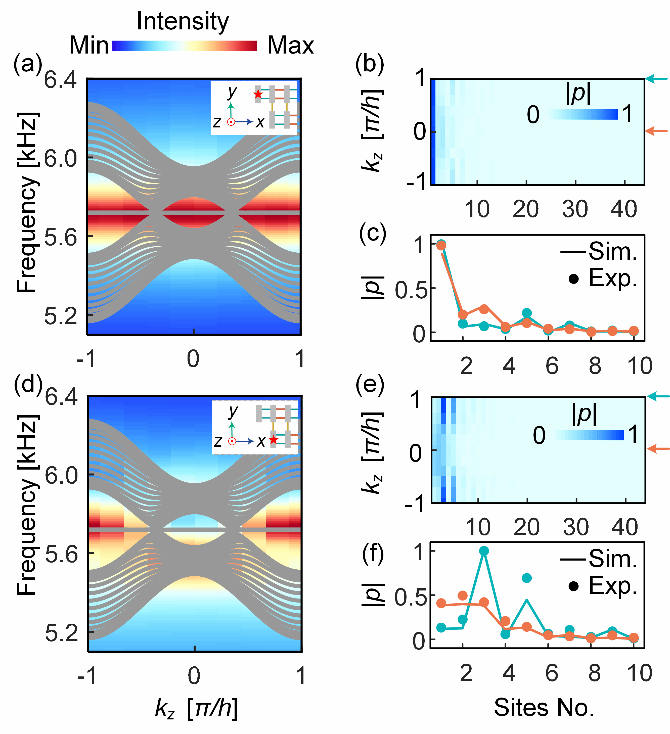 图5. 声学拓扑半金属边拓扑性质的实验测量。