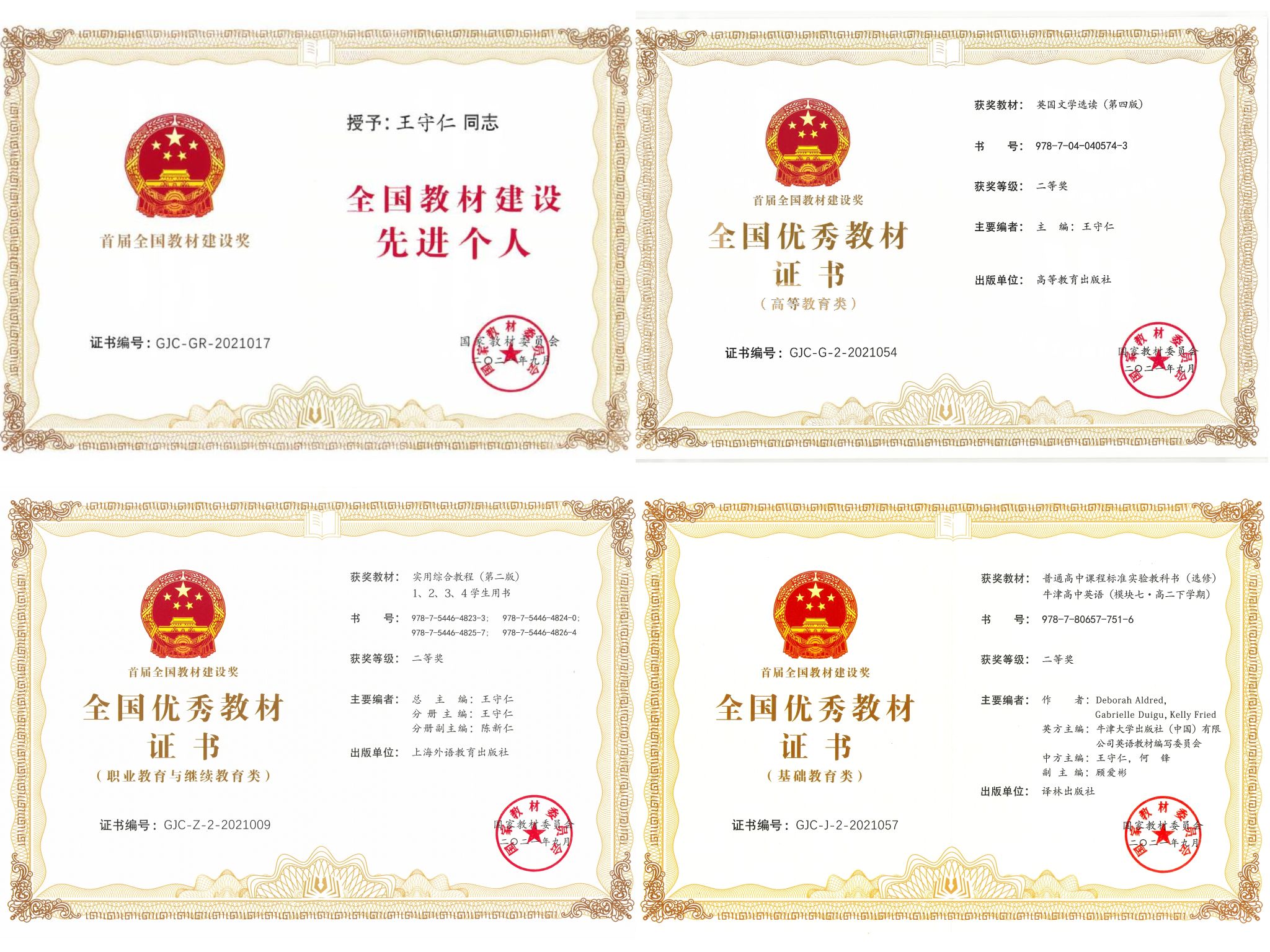 2021年9月,王守仁教授获得“全国教材建设先进个人”荣誉称号,获得全国优秀教材二等奖3项