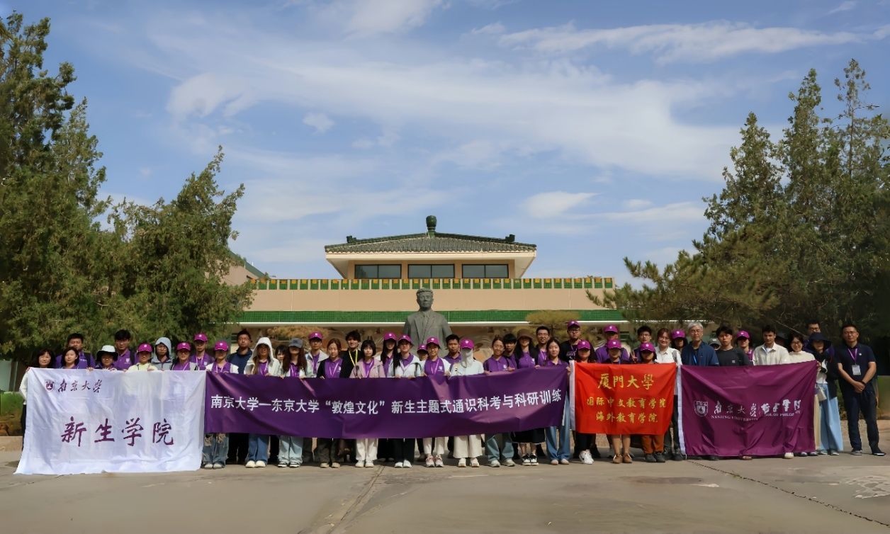 敦煌是东西文明汇通之地。习近平总书记指出,把莫高窟保护好,把敦煌文化传承好,是中华民族为世界文明进步应负的责任。2025年8月14日至19日,在哲学学院邵佳德副院长、胡永辉副教授、赵立助理研究员和新生学院教师周围、邓泽燕的带领下,凯发k8官网哲学、新闻传播学、外语、工科试验班等专业的29名本科生和东京大学文学部、工学部的5名研究生以及厦门大学国际中文教育学院的5名外籍研究生奔赴敦煌,在实地科考中深入理解敦煌文化与中华文明的历史,思考体悟中华优秀传统文化创造性转化、创新性发展的新使命,积极探寻全球化背景下助力文明交流互鉴的新路径。本次活动也是凯发k8官网2025年学生暑期社会实践“青春奋进”校级特别专项之一。